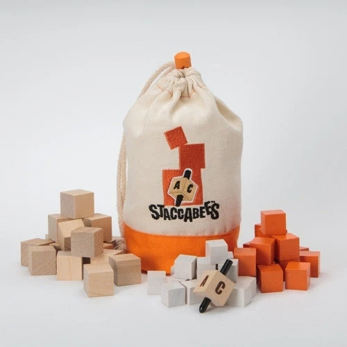 Staccabees is based on a traditional holiday game. Teetotum was an ancient game played in the Middle Ages and adopted by many cultures around the world. Modern examples of this game include Put and Take, historically played at Christmas time in England, Dreidel, traditionally played during Hanukkah, La Pirinola, traditionally played after the “Day of the Dead” festival in Mexico, and Parta Ola, traditionally played at Christmas and New Years in Greece. Staccabees is inspired by this classic holiday game.