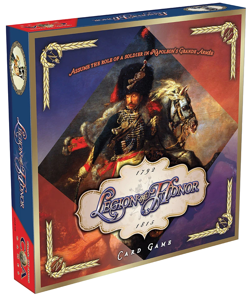 Legion of Honor is a highly innovative game that recreates the personal drama of the Napoleonic wars. Using a quick-playing, card-driven game system, each player assumes the role of a French soldier — orgrognard — starting out as a young sergeant or sous-lieutenant trying to make it in life beginning in 1792. Fortunately for the enterprising grognard, he can look forward to over twenty years of almost continuous war provided courtesy of the Directory and Napoléon!
