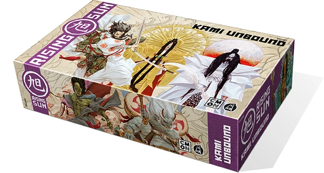 Kami Unbound is a new ruleset which makes the presence of the Kami even more potent and vital in Rising Sun! Normally, the influence of the Kami is restricted to the bonuses each of them grant during the Kami turn, granted to the Clan who has the most Shinto worshiping them. With Kami Unbound, the Kami will get their own figure, which starts the game in a specific Province.