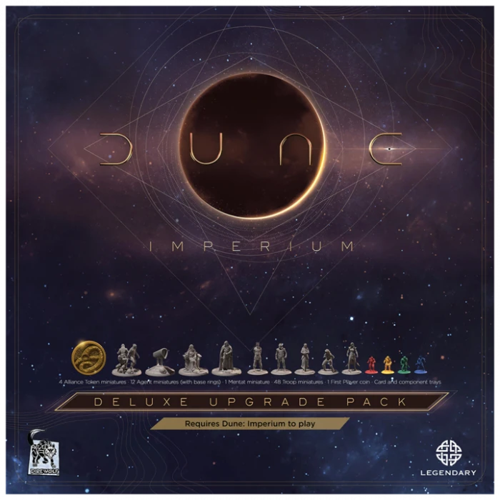 Add-on only; requires Dune: Imperium to play. Individual model details of the contents of the Dune: Imperium Deluxe Upgrade Pack may vary, depending on final factory tolerances.