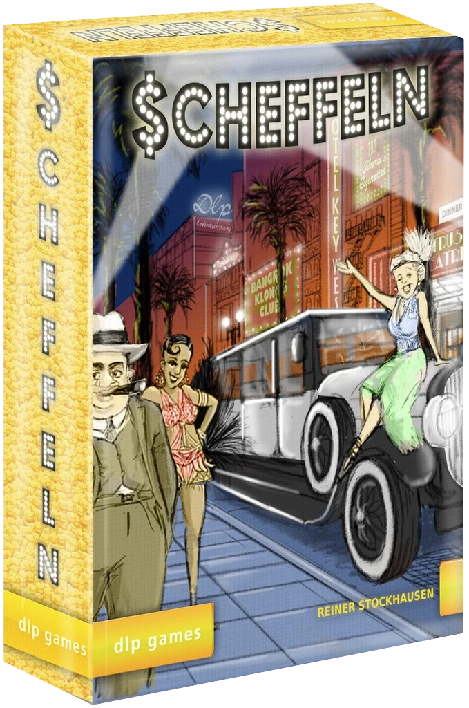 In Scheffeln โ a German word meaning to make a lot of money โ players choose characters to conduct business for them. Using your hand of cards, you move these characters to the different businesses to earn bucks in the gambling business, smuggle alcohol, or act as a film industry mogul. You can move not only your own character, but also those of your opponents to mess up their strategy.