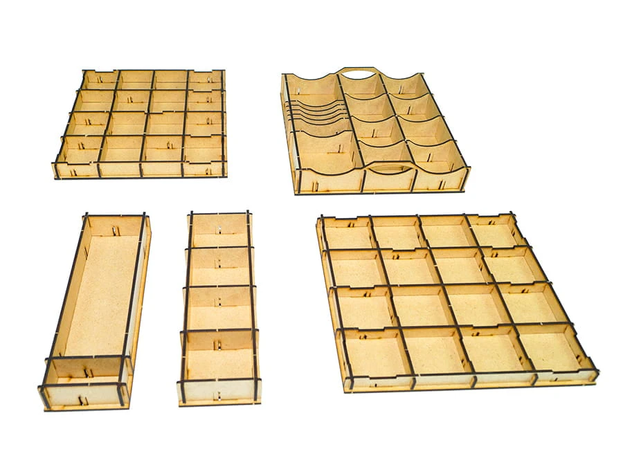 The insert is durable and made of high-quality HDF. To assemble it, there is no glue required. It allows you to hold all components inside the box. You can see the suggested components setup on the pictures. This offer concerns only insert. The game is not included.