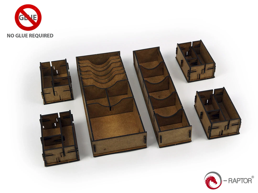 The insert is durable and made of high quality HDF. To assemble it, there is no glue required. It allows to hold all components inside the box, including board and manual.