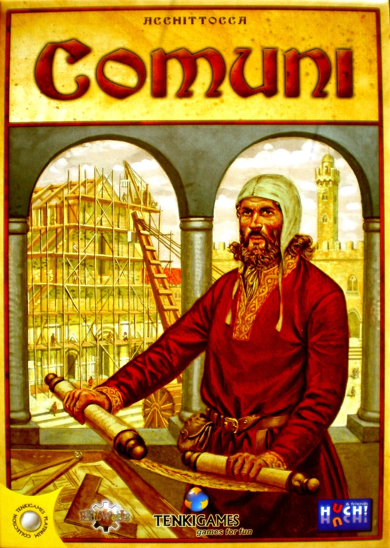 In this game each player rules a particular COMUNE and has to increase the wealth of the city. To do this he must build structures that are the core of the Economic, Military, Cultural and Religious life.