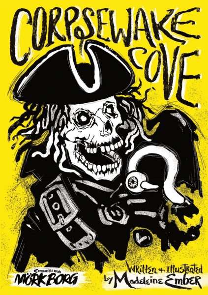 An adventure for use with MรRK BORG RPG or by conversion to the fantasy rpg of your choice. Corpsewake Cove is an independent production by Ember + Ash and is not affiliated with Ockult รrtmรคstare Games or Stockholm Kartell. It is published under the MรRK BORG Third Party License. MรRK BORG is copyright Ockult รrtmรคstare Games and Stockholm Kartell.