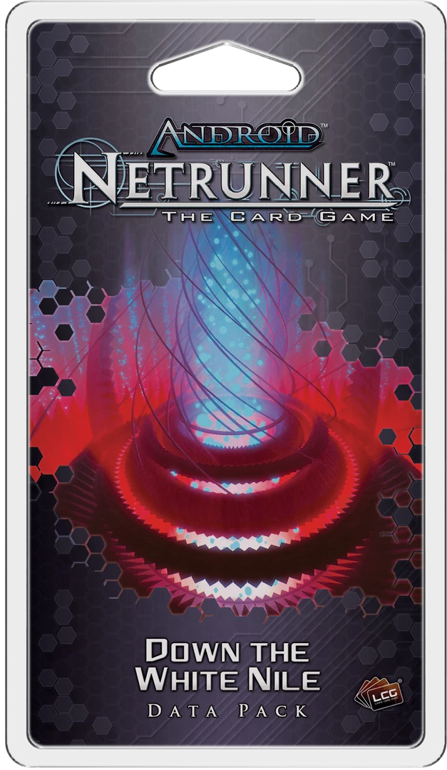 What Jinteki secrets does Jinja hold? Down the White Nile is the second Data Pack in the “Kitara Cycle” for Android: Netrunner โ The Card Game, and its sixty cards (three copies each of twenty different cards) reinforce the Kitara Cycle’s focus on the tense interactions between Corp and Runner. These interactions hinge largely upon the secrets Jinteki’s locked behind the doors of its Kisu2 Hospital. Bacteria and viruses (both physical and virtual) feature heavily, as do a new Shaper identity, new programs, ice, ambushes, and agendas that pay the Corp even if they’re stolen.