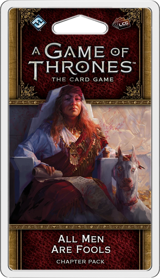 In the aftermath of the Battle of the Blackwater, a moment of peace falls across Westeros โ but schemes are hatching in the darkness. All Men Are Fools is the first Chapter Pack of the “Blood and Gold” cycle for A Game of Thrones: The Card Game, and following the lead of the previous two cycles, this cycle focuses on the next book of the series, A Storm of Swords. At the same time, you’ll find a new focus on your gold with a brand-new keyword and recurring events.