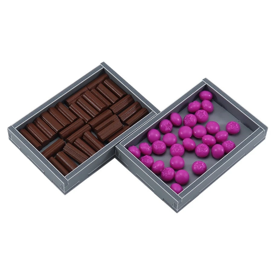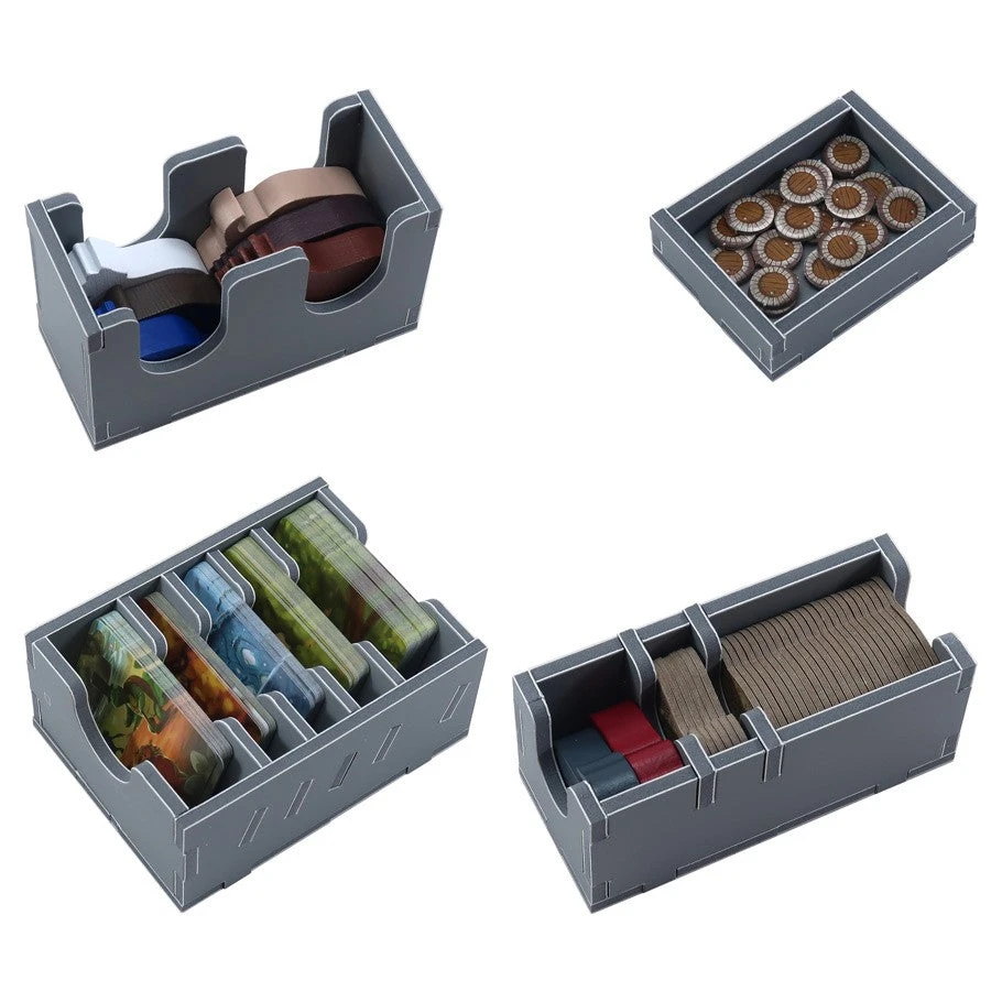 Insert compatible with Everdell® including all Collector’s Edition content and the Pearlbrook®, Bellfaire® and Spirecrest® expansions. The design provides both efficient storage and improved game play. Many of the trays can be utilised during the game, and they greatly aid set-up and clear-away times. There is space for all cards to be sleeved.