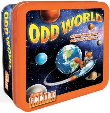 Odd World immerses players in a game universe where collecting the most planets is the path to victory. There is however one condition, only an odd number of each of the known planets will count towards victory. To win, players take calculated risks, watch their opponents’ game and attempt to cunningly disrupt it all the while trying to preserve their own gains. Remain on guard as tumbling from what seems as a sure winning position to a losing one can happen with the flip of a card!