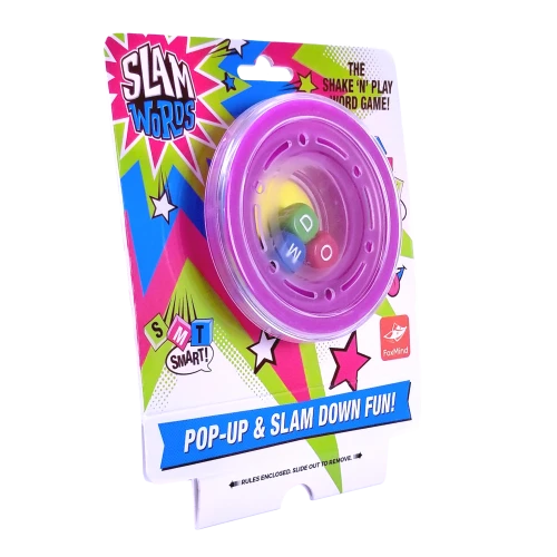 Shake the cup, slam it shut to reveal 3 letters. Quickly find a word that uses the three letters and pass the cup to the next player who has to find a new word, or they are out. Part of our Slam Dice line, this game is highly portable for fun anywhere.