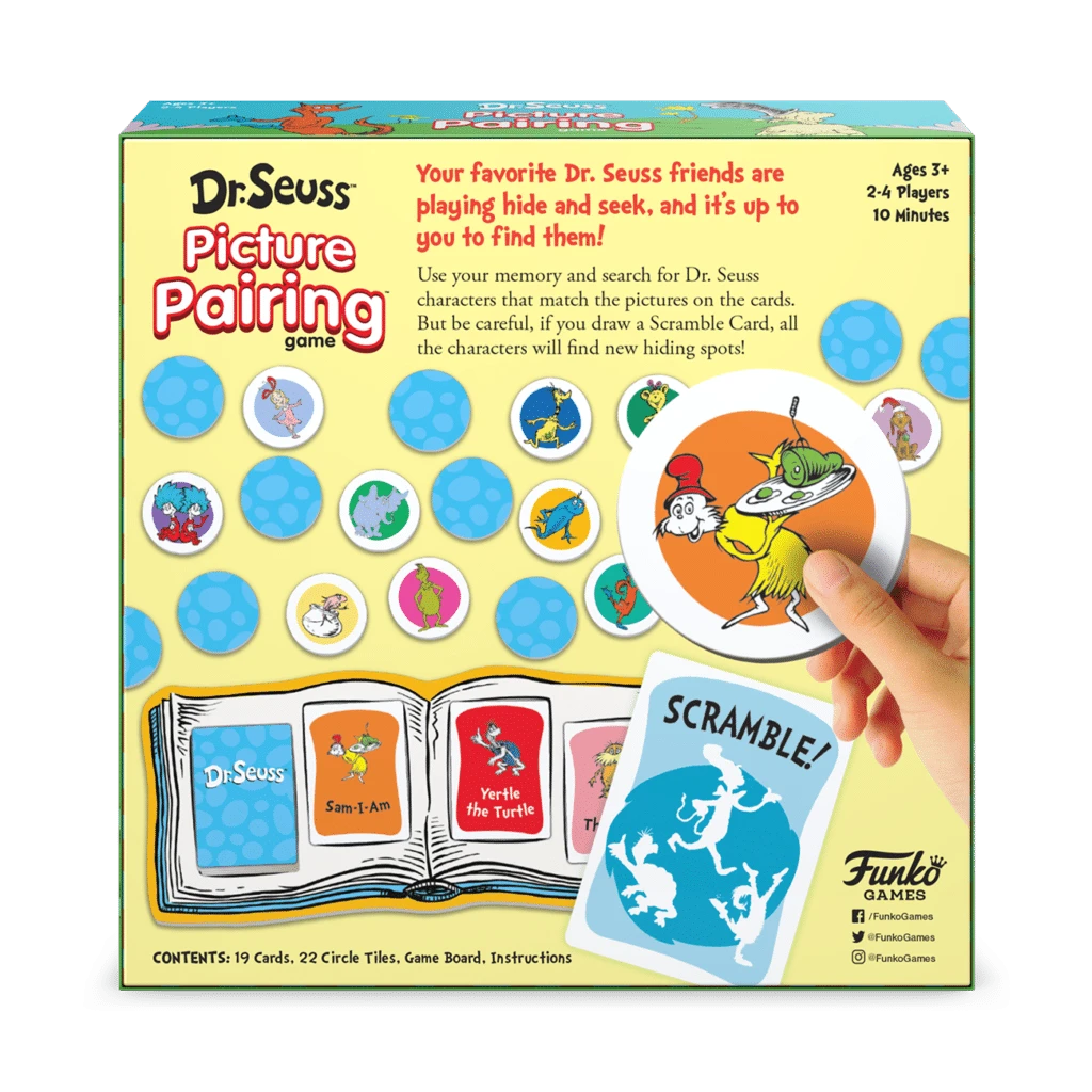Your favorite Dr. Seuss friends are playing hide and seek. The world of Dr. Seuss is a big place, and youโll need to use your memory to find the many creatures, both big and small, that live here!