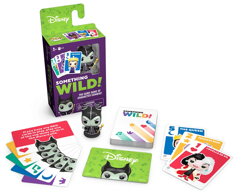 Something Wild is a line of card games featuring beloved characters and collectible Pop! pocket figures. Play numbered and colored character cards to make sets and runs. The first player to score three powers wins the game. Combine multiple games to add more character cards, more Pop! figures, and more powers to your game!