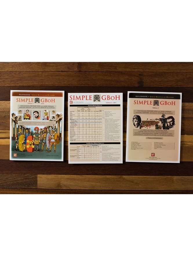 Simple Great Battles of History (Simple GBoH) allows gamers to recreate the significant battles of the ancient Western world covered by GMT’s Great Battles of History (GBoH) Series. Simple GBoH is designed for players who want a faster, less die-roll-heavy version of the GBoH system, while retaining as much of the historical flavor and insight of the original rules. These rules and its companion playbook cover all the battles published in Deluxe Great Battles of Alexander, SPQR, Caesar: The Civil Wars, Caesar: Conquest of Gaul, Cataphract, and all their related modules. The battles presented in C3i are published in the Simple GBoH Battle Manual.
