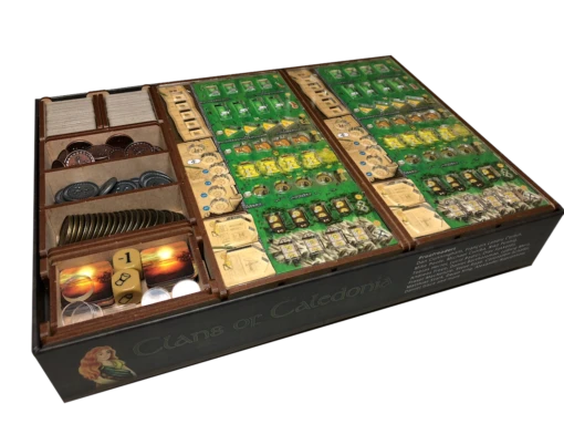 Our storage solution for Clans of Caledonia™ provides nine (9) trays to organize your game (retail or KS) when on the shelf and when in play and includes four acrylic overlays. This kit includes four (4) player trays that are also used during play and utilize a clear acrylic overlay to organize your player components.