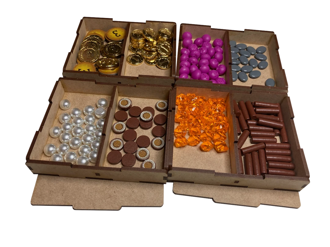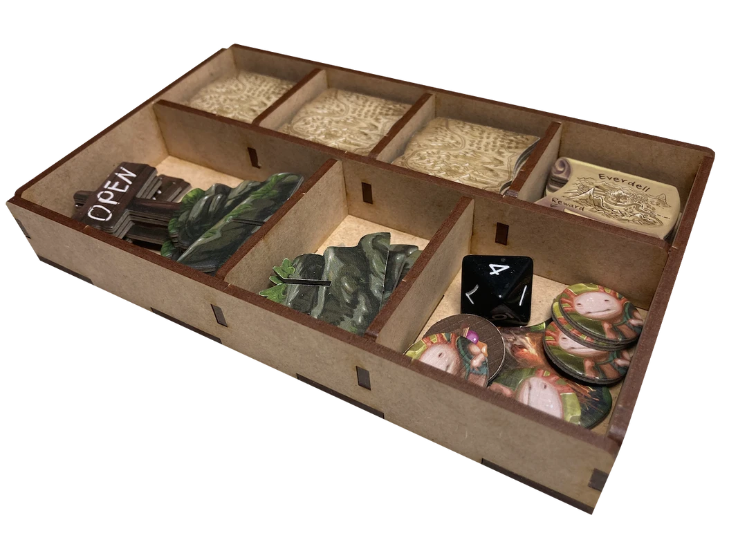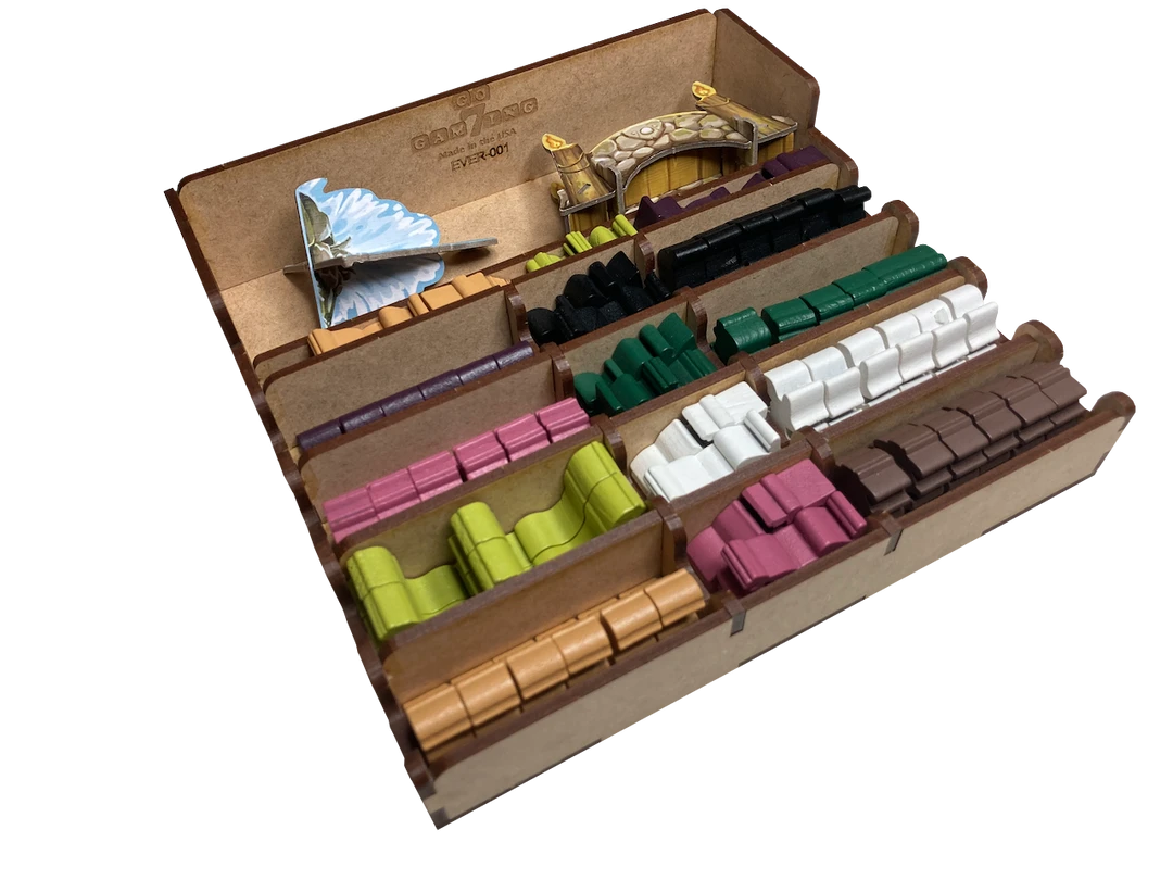 Our organizer for Everdell + Pearlbrook + Bellfaire + Spirecrest provides a structured storage solution to help you safely store the base game and expansions while getting the game to the table much quicker. This kit includes eleven (11) trays and supports collectorโs edition components or retail components.