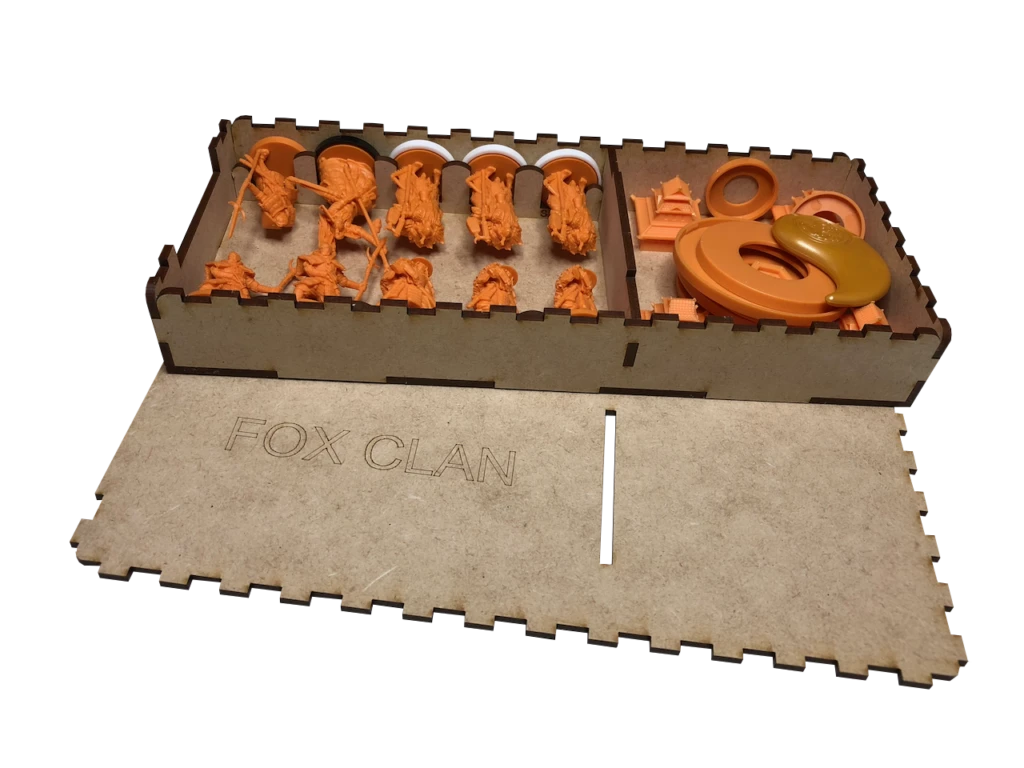 Our storage solution for the Rising Sun™ Daimyo box (Kickstarter only) provides storage for the Diamyo monsters and Fox clan and includes seven (7) trays. This solution also provides storage for Dynasty Invasion components, the Monster Pack, and Kami Unbound.