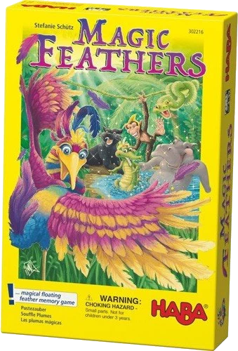 The jungle is in disarray! All the animals are running around the dense jungle looking for the partners they lost while playing. Only the colorful magic bird soaring high over the treetops has a good view. His magic feathers float gently down into the jungle and enchant the animals that they touch. This helps the animals find their partners faster. No animal wants to be alone for long in the dense jungle. The magic bird will help players quickly reunite all of the animal pairs. The player who reunites the most matching animal pairs becomes king of the jungle and can, at the end, decorate themselves with the most beautiful Magic Feathers.