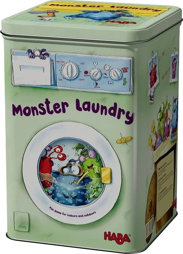 Monster Laundry starts on the signal “Monster wash!” The players stand evenly spaced out in a circle and hold the washing line around them. As a living clothes horse, the players’ goal is to grab the monsters and hang them on the washing line, either on your left-hand or right-hand side, depending on certain criteria. The fastest player gets a golden clothespin as a reward. The first player to get three of these precious pins wins.