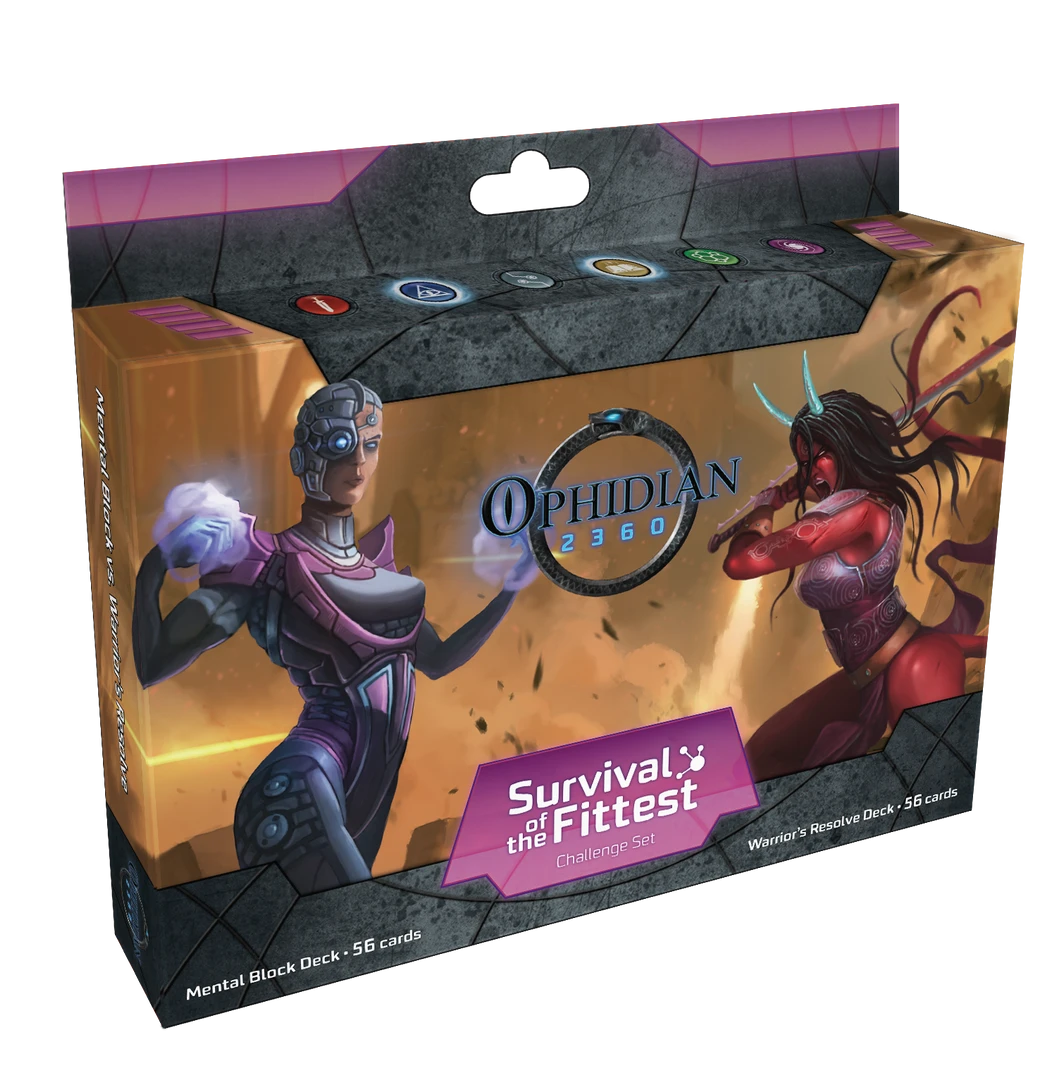Ophidian 2360: Survival of the Fittest is a non-collectible expansion to the Ophidian 2350 arena combat game as well as a standalone game that pits futuristic gladiators against each other using unique and thematic mechanisms.