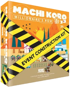 Inside each kit you will find two Machi Koro: Millionaireโs Row Expansion decks as well as two 7-card oversized Landmark sets, one for the event winner and one for event participants and/or retailers. Each kit also includes two large posters for retailers to market their Machi Koro gaming events in their stores.