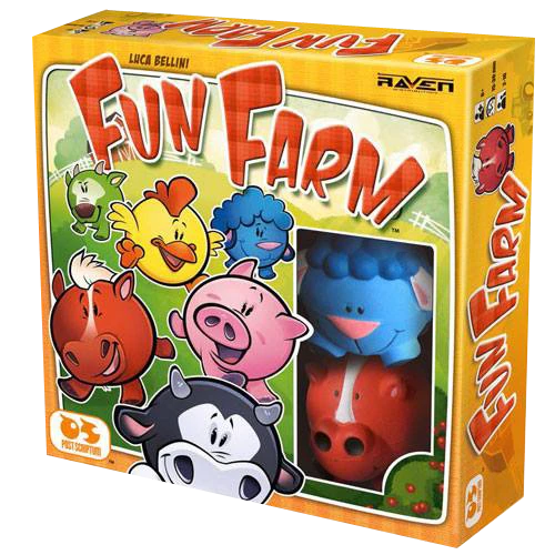 In the fast-catching gameย Fun Farm, players compete to spot and catch the animal shown on the cards before all their opponents. Each round, the active player reveals the top card from the deck, placing it next to any others still on the table. Each card depicts an animal, a black die (showing one color on this die), and a white die (showing one color on this die). The player then rolls the black die and the white die. If a die depicted on a card matches the color rolled on that die, players race to grab the animal toy from the table that matches the animal depicted on the card. Whoever does so first claims the card, and once the deck runs out, whoever has the most cards wins!
