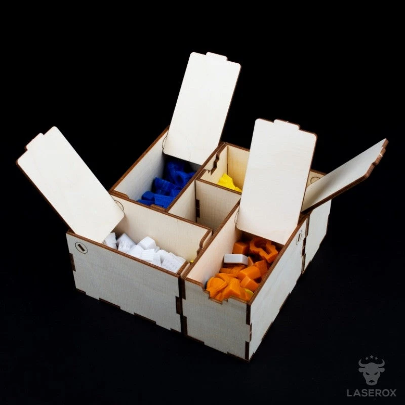 - a box for each player with a hinge door and unique engraving