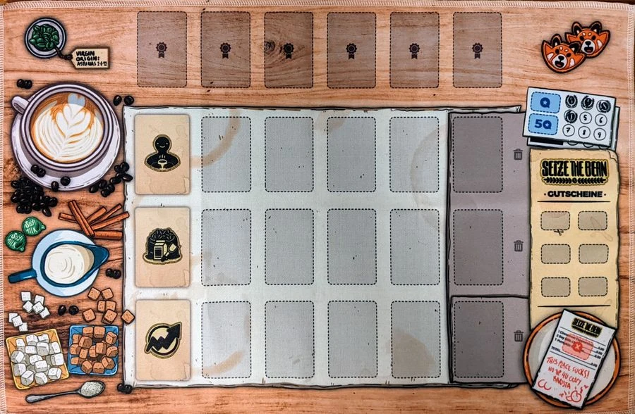 This add-on is for a large, linen canvas play mat (approximately 60cm x 40cm in size). The play mat will include a full-color print depicting the theme of the game with areas of the table depicted for setup.