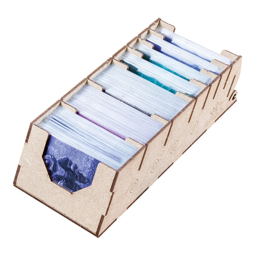 Designed to fit into the game box. Designed for both sleeved and unsleeved cards.