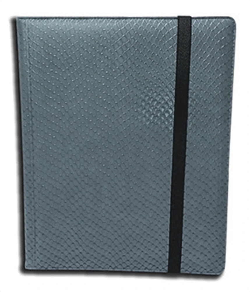 Vinyl binder with 4-pocket side-loading pages. Holds up to 160 cards. Features a secure elastic band to hold the binder closed!
