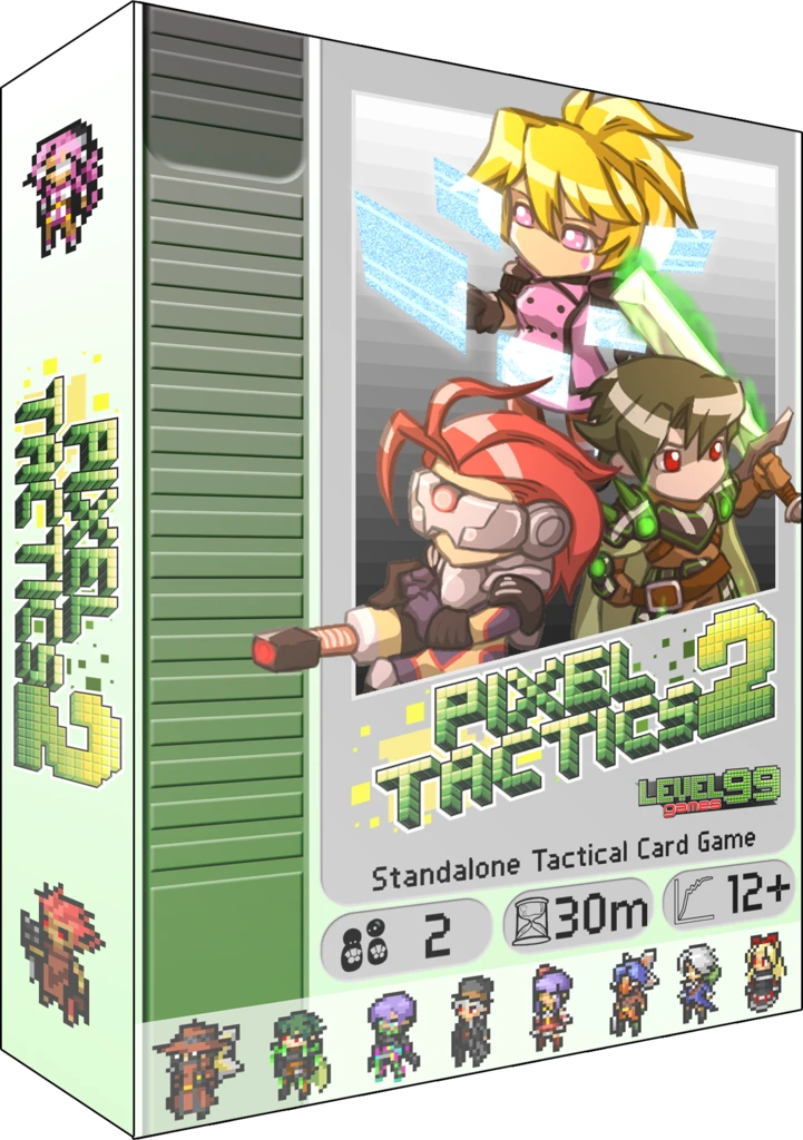 Pixel Tactics 2 is a head-to-head game of tactical combat for two players. Each player has an identical deck of 25 cards, from which they draft a leader. The leader’s abilities alter vastly the strategy and playability of every other card in the deck, making the game playable in 25 different ways.