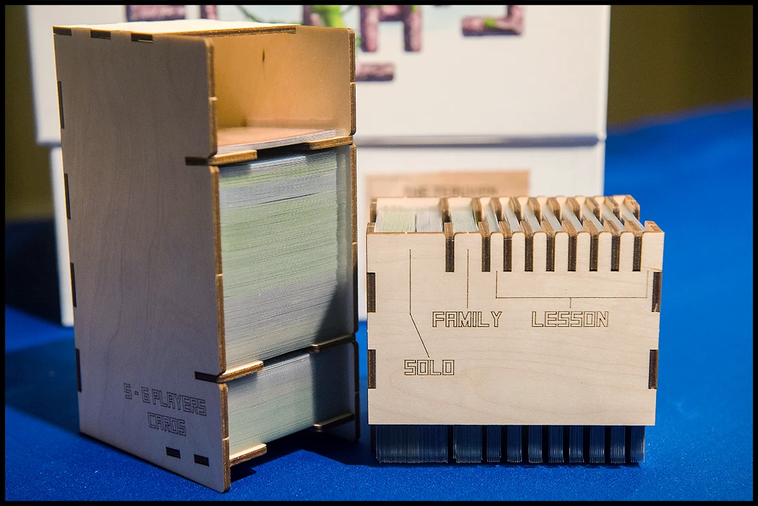- The game can be stored vertically with the wooden insert and the components will not lose their place.