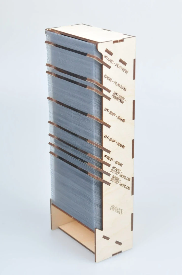 - Designed to fit sleeved cards (i.e. Fantasy Flight Games Standard Size sleeves).