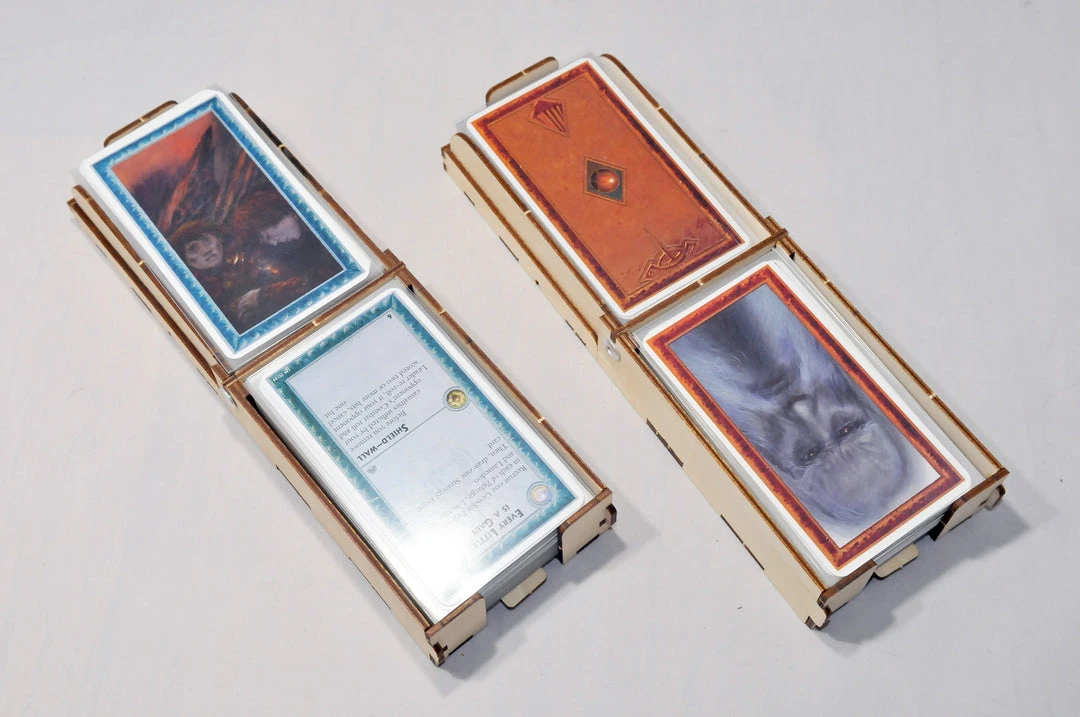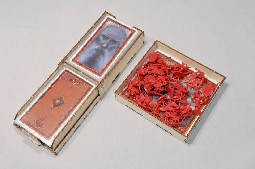 - The card trays can holds sleeved cards (Fantasy Flight sleeves or the Mayday sleeves designed for the game).