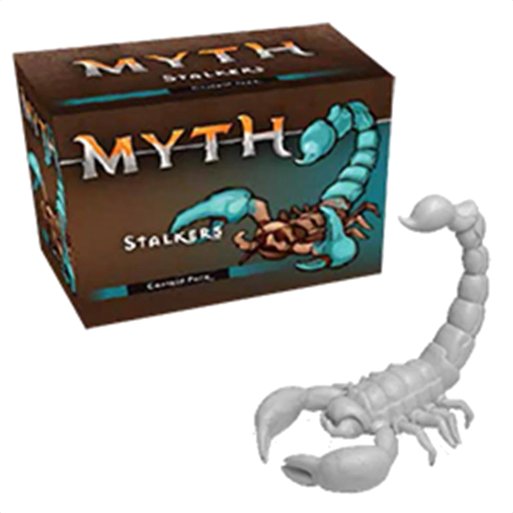 The Myth: Stalkers Captain Pack consists of two stalker captain miniatures identical to those included in the base Myth game. Stalkers lead the crawlers and move around the tile more easily than other monsters, ideally injecting heroes with formidable poisons that can quickly kill even the most stalwart soldier.