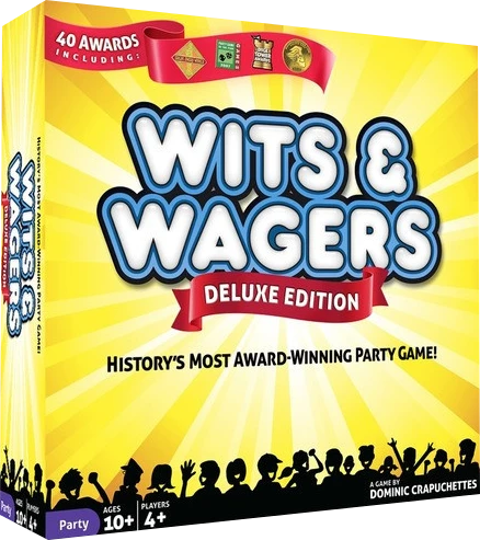 Wits & Wagers is a trivia game that lets you bet on anyone’s answer. So you can win by making educated guesses, by playing the odds, or by knowing the interests of your friends. It can be taught in 2 minutes, played in 25 minutes, and accommodates up to 20 people in teams.