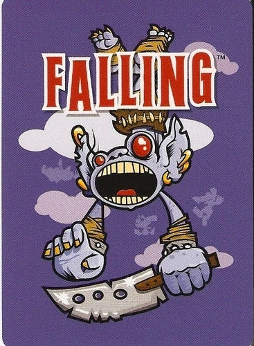 This game is from an odd genre, real-time card games. Each of the players (except the dealer) is a person falling to his death. The goal is not to live, rather just to be the last one to go splat. The dealer continues dealing cards to players, eventually giving them ‘ground’ cards. But on the way down players can do all kinds of nasty stuff to each other to ensure their relative longevity.
