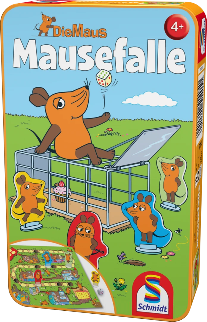 Mausefalle is a simple die-rolling game for children that features the main character of a popular German children’s TV program, “Die Sendung mit der Maus” (The Program with the Mouse), which first aired in 1971.