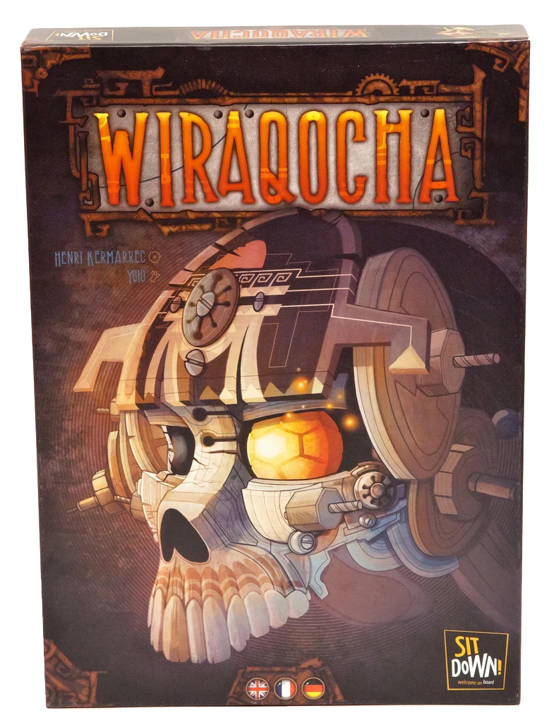 Wiraqocha Valley is represented by an adjustable board consisting of 22 hexagonal tiles, each of them being identified by a number from 1 to 12, or a dice combo (pairs or straights). In his turn, each player rolls some six-sided dice, combining them to take possession of territories, or to protect from the opponents the ones he already owns. Every hexagon affords resources or special capacities, which are means to influence die results to fit oneโs strategy. There are three ways to win: bring back a huge cargo of Somnium to the Empress; acquire enough scientific knowledge to build the Leviathan, a terrifying weapon serving the Kingdom; or find in the temple depths the four relics that will allow you to reach Wiraqochaโs treasure.