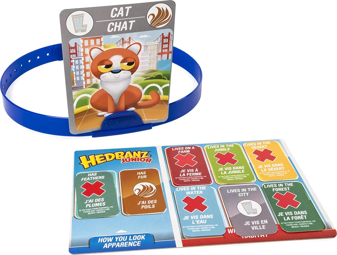 - Younger kids can now join in the excitement with HedBanz Jr.! With an animal theme, the hilarious quick question game of “What animal am I?” is available for players age 5 years and up.