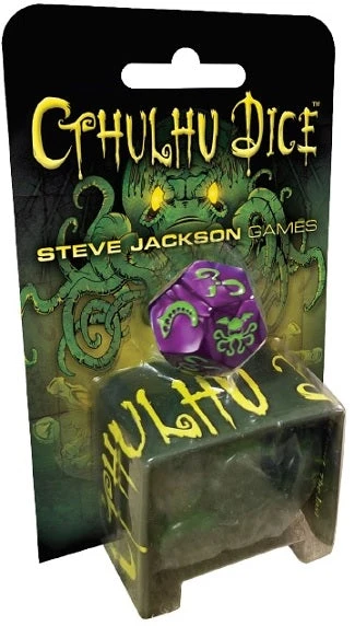 Cthulhu Dice lets you drive your rivals mad . . . very, very quickly. Players take turns rolling the big, beautiful, custom 12-sided die embossed with tentacles, Elder Signs, and more. Destroy your opponents’ sanity! Better yet, steal it. But watch out for Cthulhu – when he comes up, he takes sanity from everyone! The last sane cultist wins . . . unless everyone goes mad together. Then Cthulhu wins!