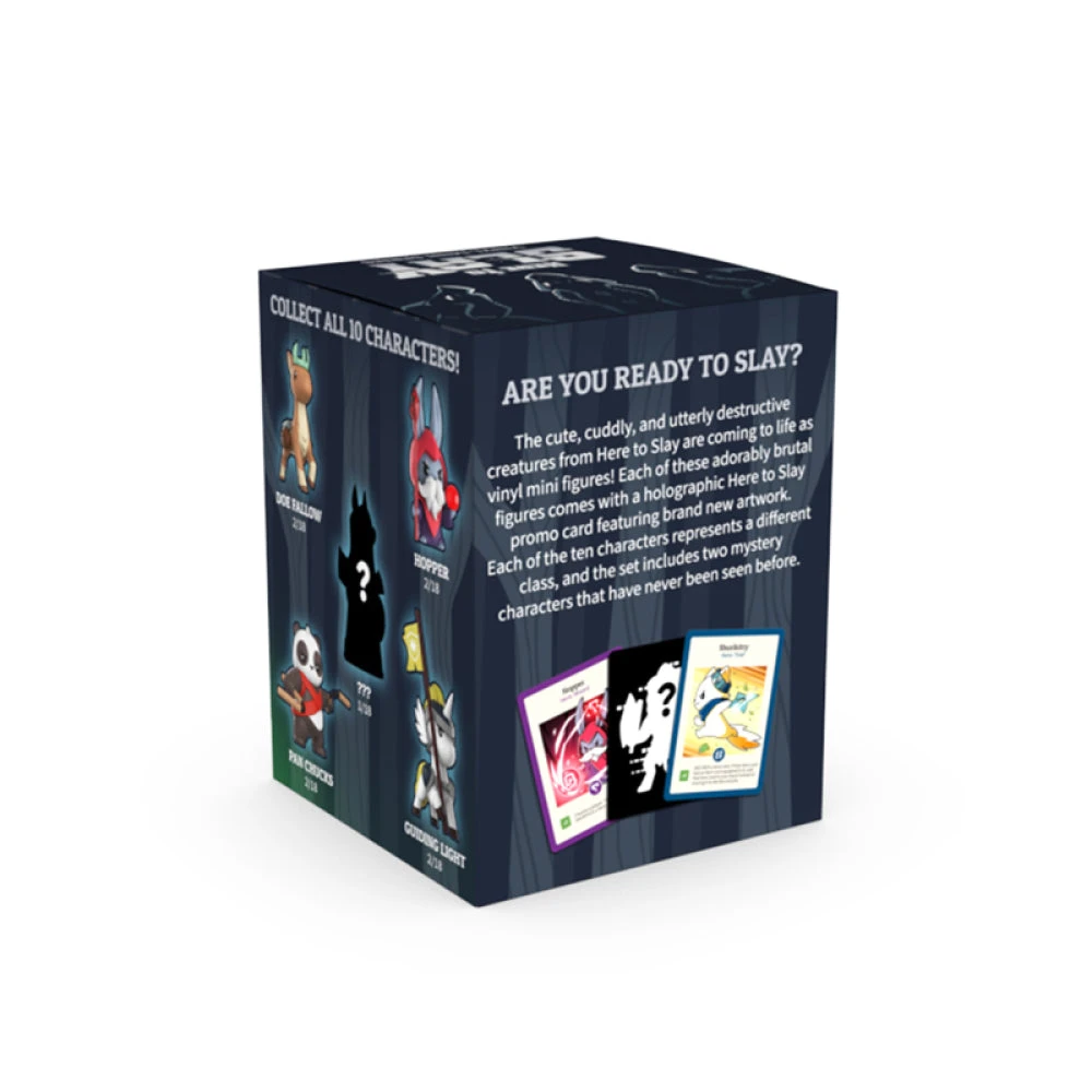 Are you ready to slay? The cute, cuddly, and utterly destructive creatures from Here to Slay are coming to life as vinyl mini figures! Each of these adorably brutal figures comes with a holographic Here to Slay promo card featuring brand new artwork.
