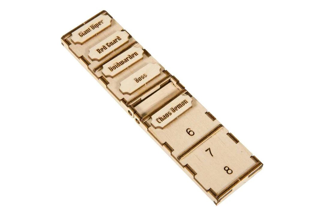 Are you lost figuring out whose turn is next? Can’t read the names on the initiative tokens? Then grab our Jaws of the Lion Initiative Tracker, designed to help keep track of initiative order during gameplay! Included are 18 wood-engraved Initiative Tokens that replace the cardboard tokens included in the game. Our Initiative Tracker can be used for the First Edition or the Second Edition of Jaws of the Lion, and can be painted and stained for a customized look.