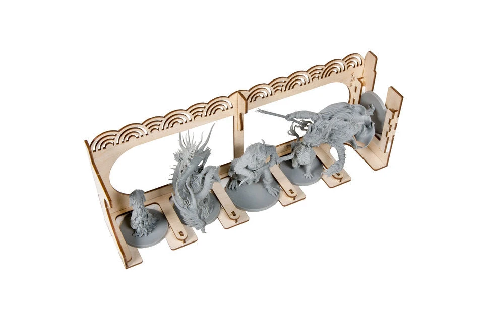 The Rising Sun Core Box organizer has 11 removable trays. The 7 miniatures trays feature our new acrylic spring clips that securely hold your miniatures, protecting painted minis! 5 are identical clan trays that hold everything you need for each clan. The miniature slots are labeled for daimyo, shinto, and bushi minis so thereโs no guessing where each one goes. The clan tray bin holds all the each clans alliance token, stronghold tokens, clan markers and monster bases. The trays can fit the Kickstarter exclusive upgraded strongholds and alliance tokens. Except the upgraded Turtle clan strongholds which are stored with the Kami shrine tiles in a separate tray. The 2 monster trays feature the same acrylic spring clips to keep the minis in place. They are also labeled with the monsterโs names and numbers on the bottom of their bases for quick and easy clean up. The adjustable season card tray gives you the option to sort your cards by season or symbol set. The battle tray holds the political mandate tiles, political/war tiles, war province and war number tokens, this tray also supports the Kickstarter upgraded political mandate tiles and war number plastic flags.