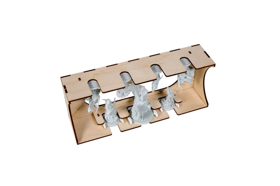 The Daimyo Collection Organizer includes everything from the Core Box Organizer and an additional 8 trays to organize the Kickstarter Exclusive Daimyo box and add-ons and expansions. The 3 monster trays feature the same new acrylic spring clips and hold all the Kickstarter exclusive monsters and the 4 Monster Pack miniatures. A single tray holds all the Kami Unbound miniatures and the cards. 3 trays hold the Dynasty Invasion expansion, 2 clan trays and the 7 Lucky Gods tray. There is also one more clan tray for the Kickstarter exclusive Fox clan.