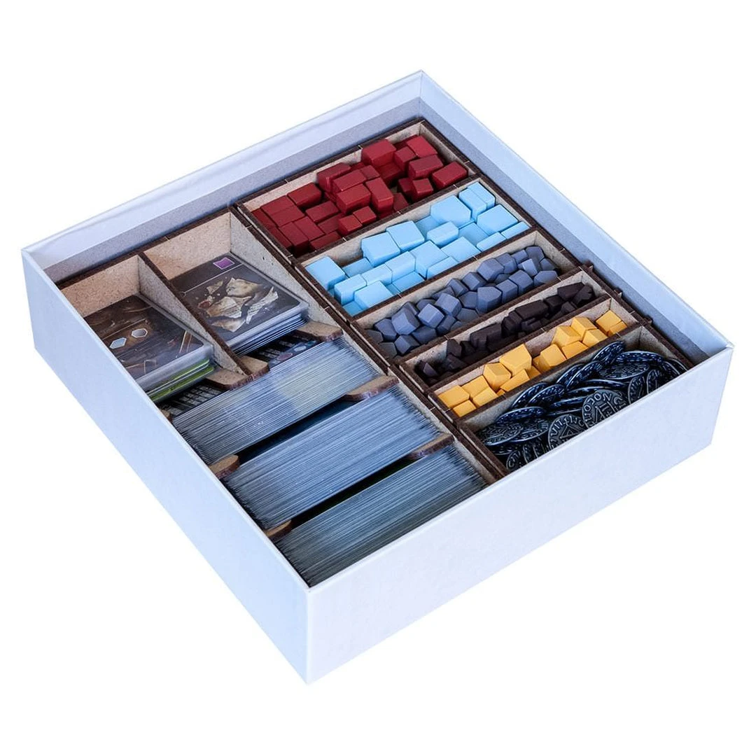 Organizer compatible with Architects of the West Kingdom. Compatible with base game (retail edition) or base game + kickstarter promos.