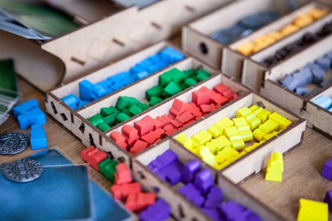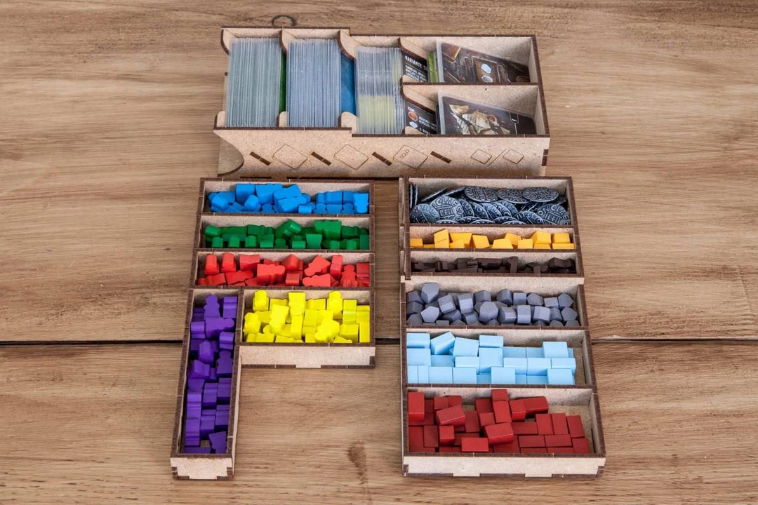 • 1x card holder with spaces for buildings, specialists, automa deck, black market/cathedral rewards/additional resources;