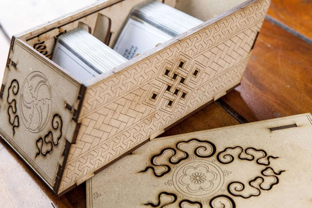 โข 1x card holder with removable dividers, which can be placed in 8 different positions. Capacity: unsleeved cards 330 cards; 40 micron sleeves (eg. Mayday) 280 cards; 60micron sleeves (eg. Sapphire) 250 cards; 100 micron sleeves (eg. Dragon Shield) 190 cards (The capacity is approximated and may vary depending on the thickness tolerance of used sleeves. The actual results may be different from the above);