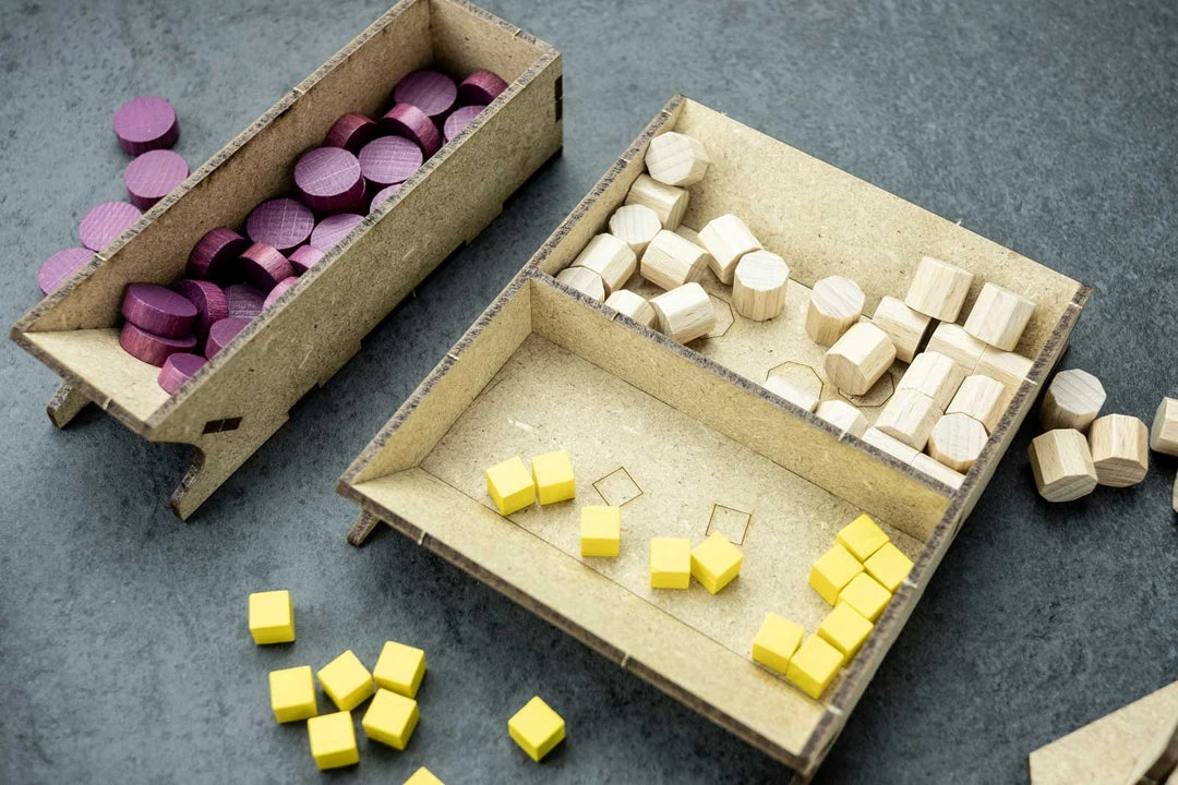 โข 1x coin tray, divided by value (cards and tokens);