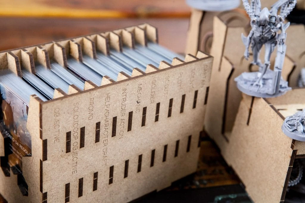 Designed to fit into the game box. Designed for both sleeved and unsleeved cards.