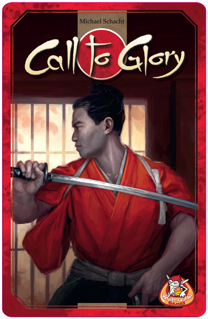 Call to Glory, packaged in a mid-sized tin box, is a fast and fun card game in which players try to collect Japanese characters of different values. When a player has two or more cards of the same character in his hand, he can (possibly) lay these cards on the table and score them at the end of the round. If, however, an opponent lays out more cards of the same type, then characters of that type already on the table are discarded. When the game ends, players score for the types of characters they have on the table.